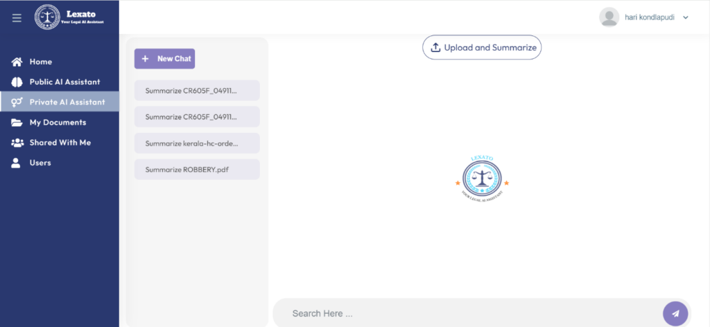 The Private AI Assistant feature in Lexato Legal AI Assistant is designed specifically for internal use by attorneys and law firms, offering robust tools to streamline legal tasks, enhance productivity, and improve accuracy. Unlike the Public AI Assistant, which handles client-facing tasks, the Private AI Assistant focuses on helping legal professionals manage their workflow and legal research more efficiently.